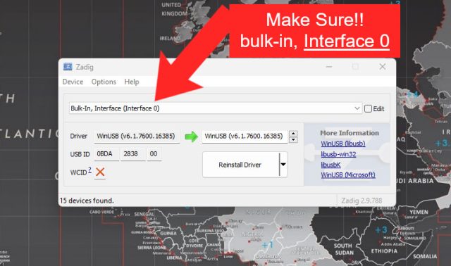 If you encounter issues during setup, double-check that you’re using a standard USB port rather than USB 3.0, and verify that the Zadig driver installation completed successfully. The RTL-SDR should appear as “Bulk-in Interface 0” in Zadig when properly connected.